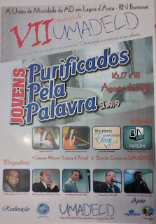 A Mocidade da Igreja Evangélica Assembléia de Deus na Cidade de Lagoa d´Anta-RN, realiza nos dias 16,17 e 18 de Agosto do Ano em Curso o IIV Congresso da UMADELD, com o Tema: Jovens Purificados pela Palavra. Salmos 119,9.